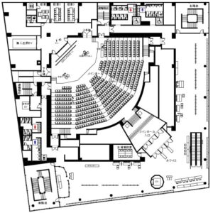 大型プロジェクター+334インチスクリーン、会議照明基本セット、有線マイク(卓上スタンド)、無線ハンド、演台(大)、司会台、会議机、無線LAN、展示パネル、サイン台、ベルトパーテーションなど ホットコーヒー