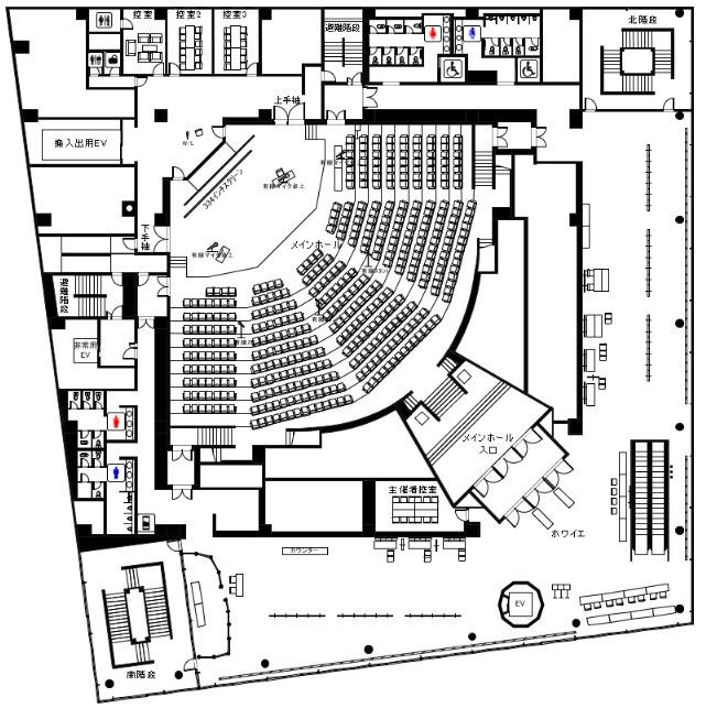 大型プロジェクター+334インチスクリーン、会議照明基本セット、有線マイク(卓上スタンド)、無線ハンド、演台(大)、司会台、会議机、無線LAN、展示パネル、サイン台、ベルトパーテーションなど ホットコーヒー