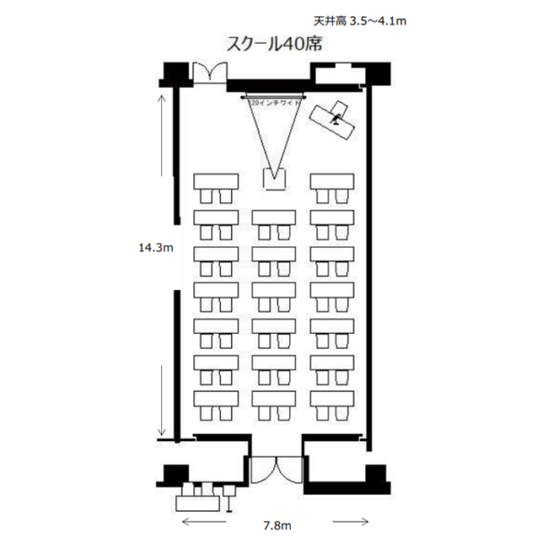 プロジェクターA、170インチスクリーン、有線マイク、無線マイク、有線LAN、会議机、サイン台